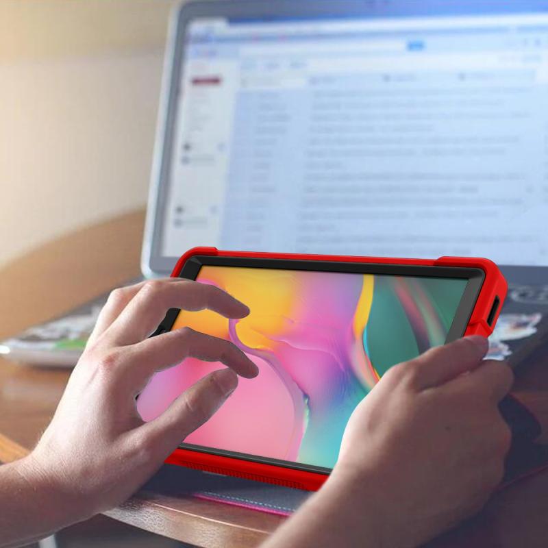 For Samsung Galaxy Tab A 10.1 (2019) Silicone + PC Shockproof Protective Case with Holder(Red + Black)
