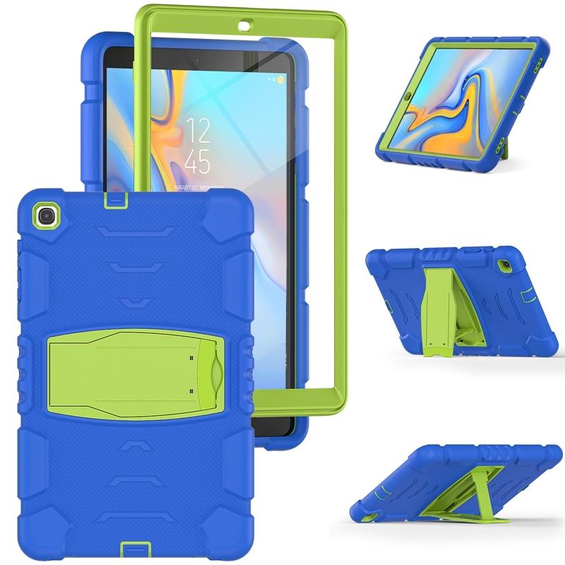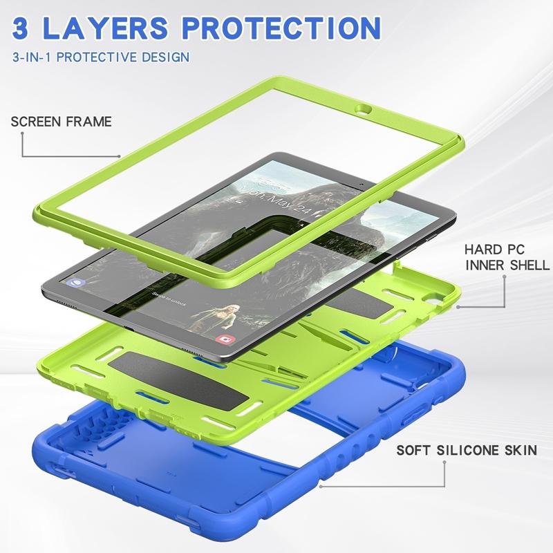 For Samsung Galaxy Tab A 10.1 (2019) T510 3-Layer Protection Screen Frame + PC + Silicone Shockproof Combination Case with Holder(Blue+Lime)