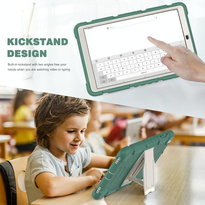 For Samsung Galaxy Tab A 10.1 (2019) T510 3-Layer Protection Screen Frame + PC + Silicone Shockproof Combination Case with Holder(Emerald Green)