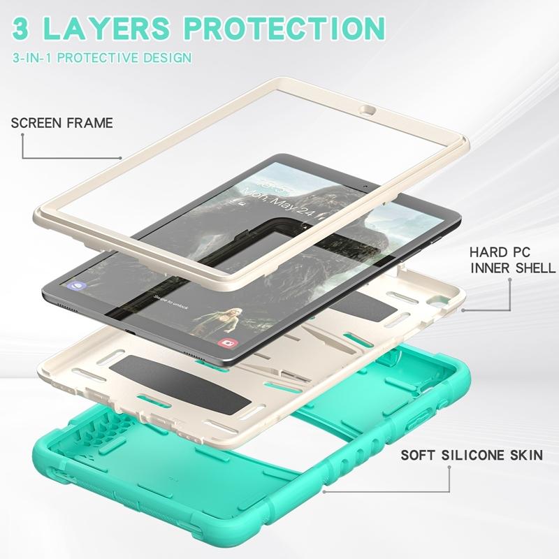For Samsung Galaxy Tab A 10.1 (2019) T510 3-Layer Protection Screen Frame + PC + Silicone Shockproof Combination Case with Holder(Mint Green)