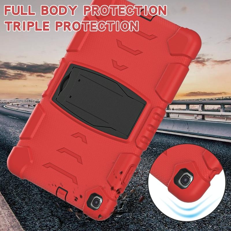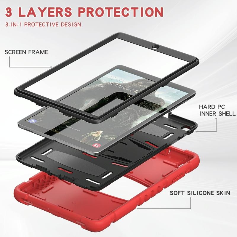 For Samsung Galaxy Tab A 10.1 (2019) T510 3-Layer Protection Screen Frame + PC + Silicone Shockproof Combination Case with Holder(Red+Black)