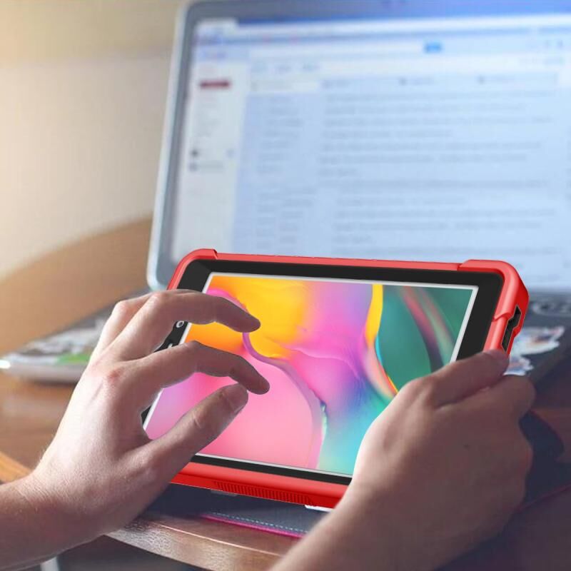 For Samsung Galaxy Tab A 8.0 2019 Silicone + PC Shockproof Protective Case with Holder(Red + Black)