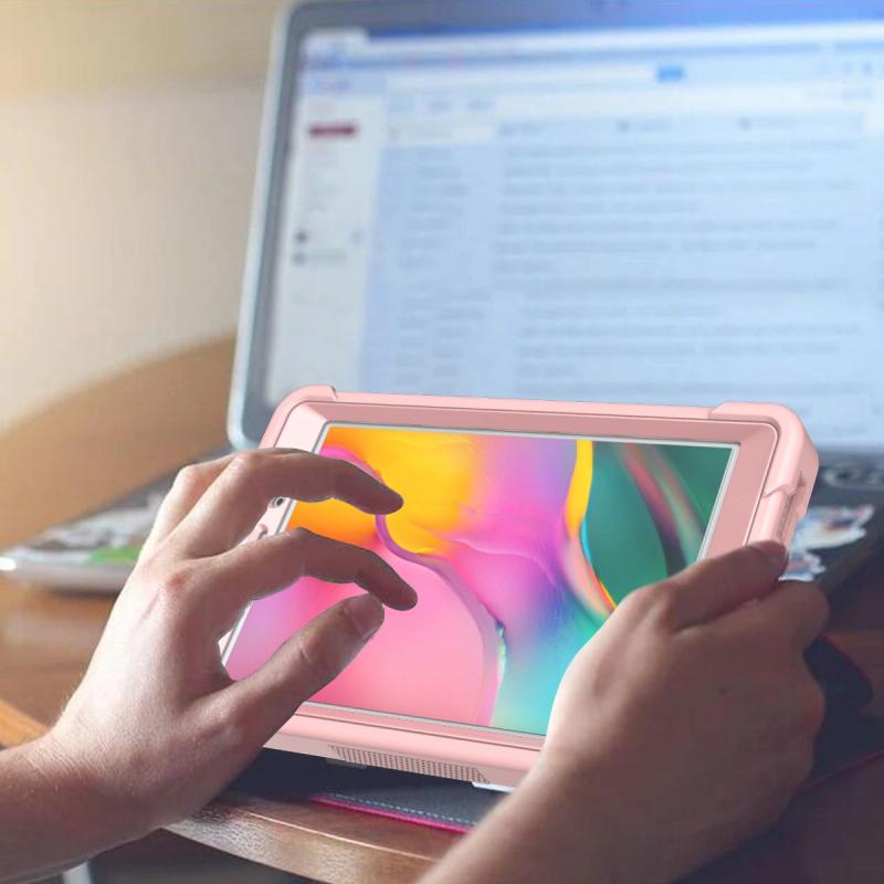 For Samsung Galaxy Tab A 8.0 2019 Silicone + PC Shockproof Protective Case with Holder(Rose Gold)