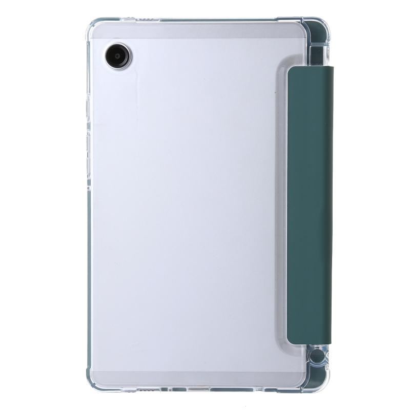 For Samsung Galaxy Tab A11 / A9 3-Fold Clear Acrylic Leather Tablet Case(Deep Green)