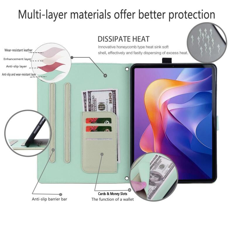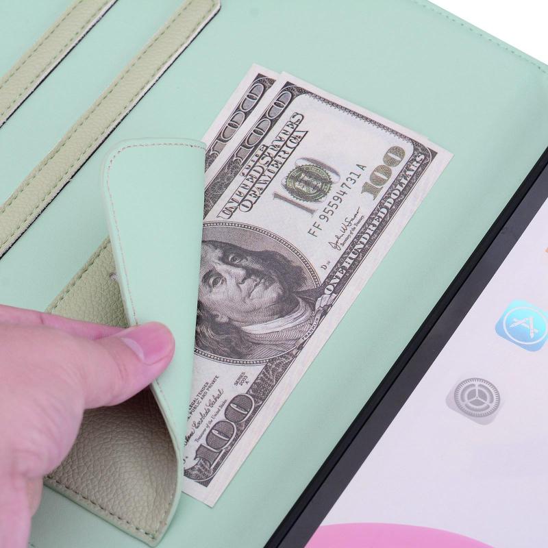 3. Card Wallet Case: Combination of a wallet and tablet PC case, with ID credit card slots and photo frame, it can be used as wallet to keep multi credit cards, cash, ID, and money, photos.