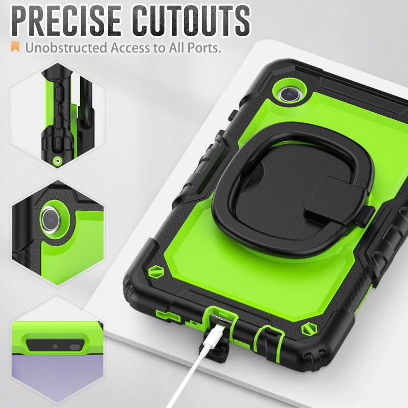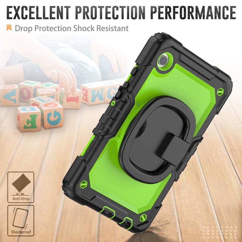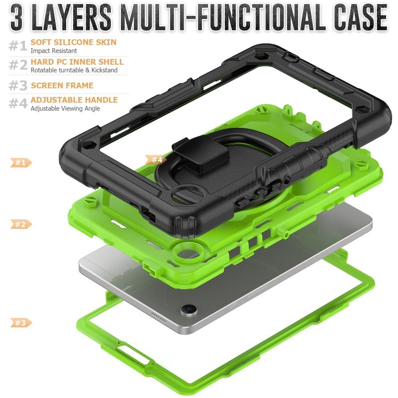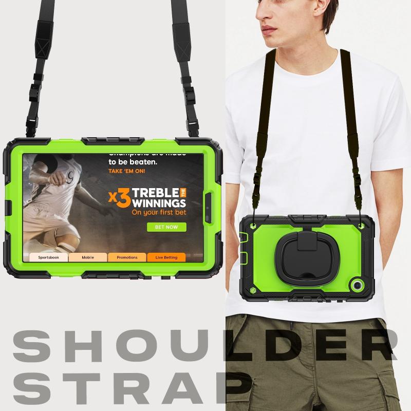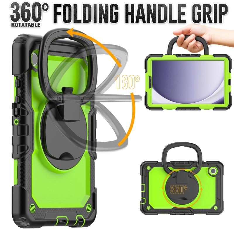 For Samsung Galaxy Tab A11 / A9 Handle Silicone Hydric PC Tablet Case with Shoulder Strap(Yellow Green)