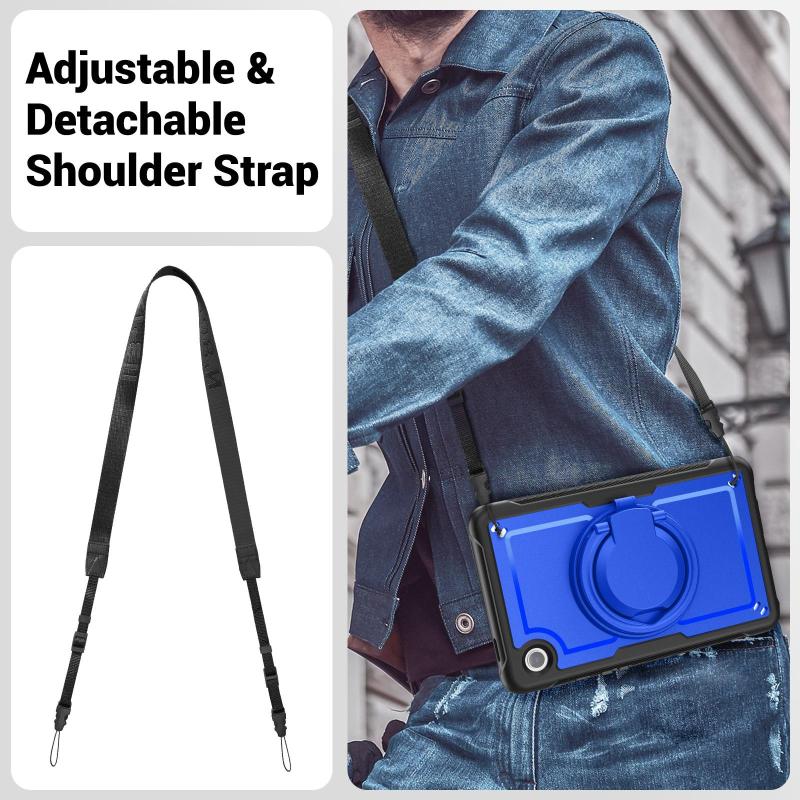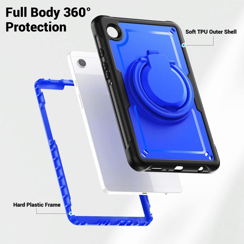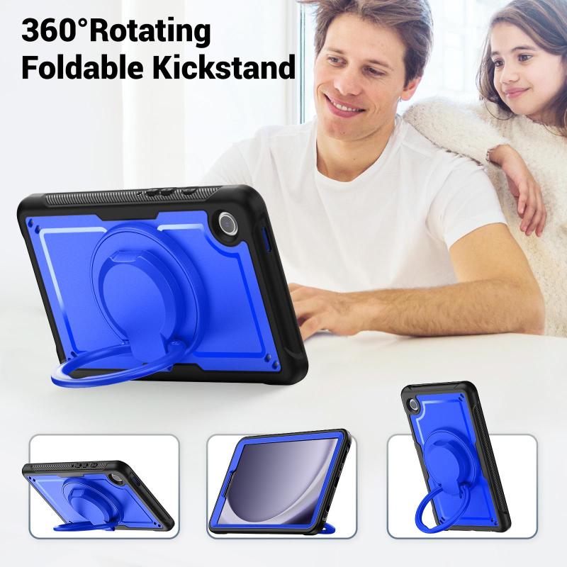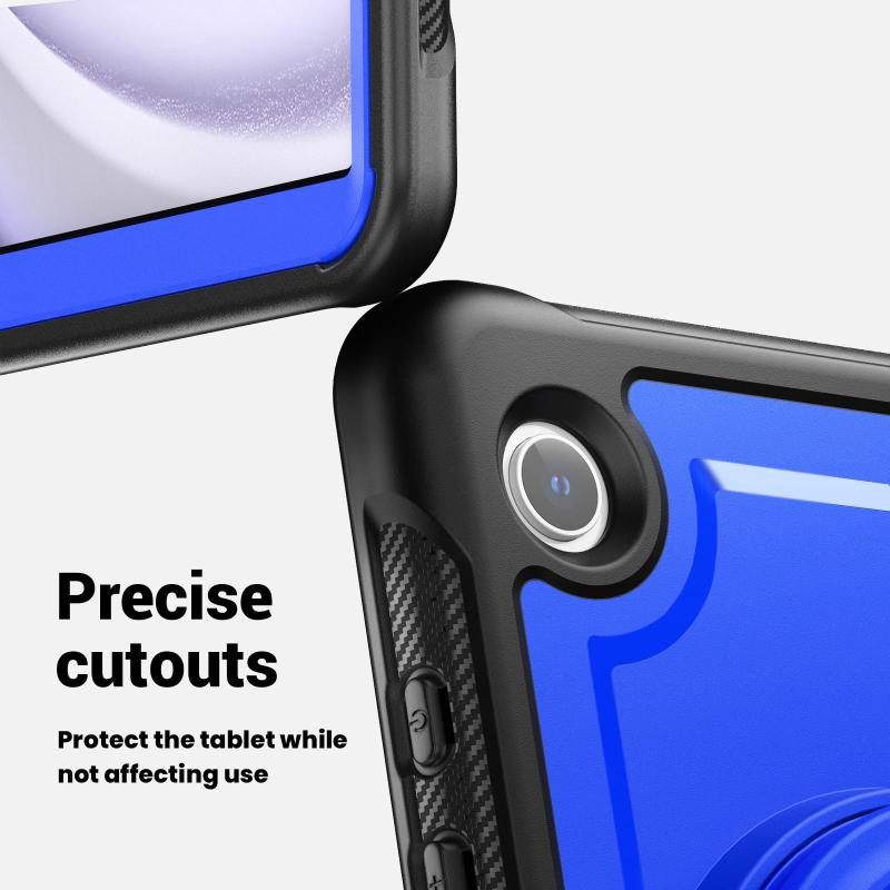 For Samsung Galaxy Tab A11 / A9 Honeycomb Hybrid Tablet Case with Handle Holder & Strap(Dark Blue)