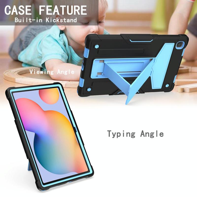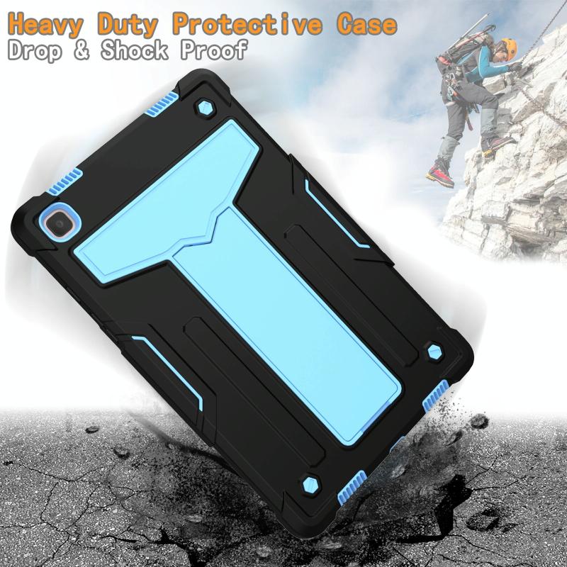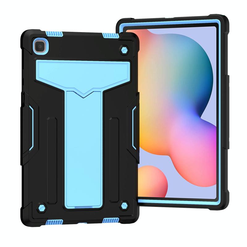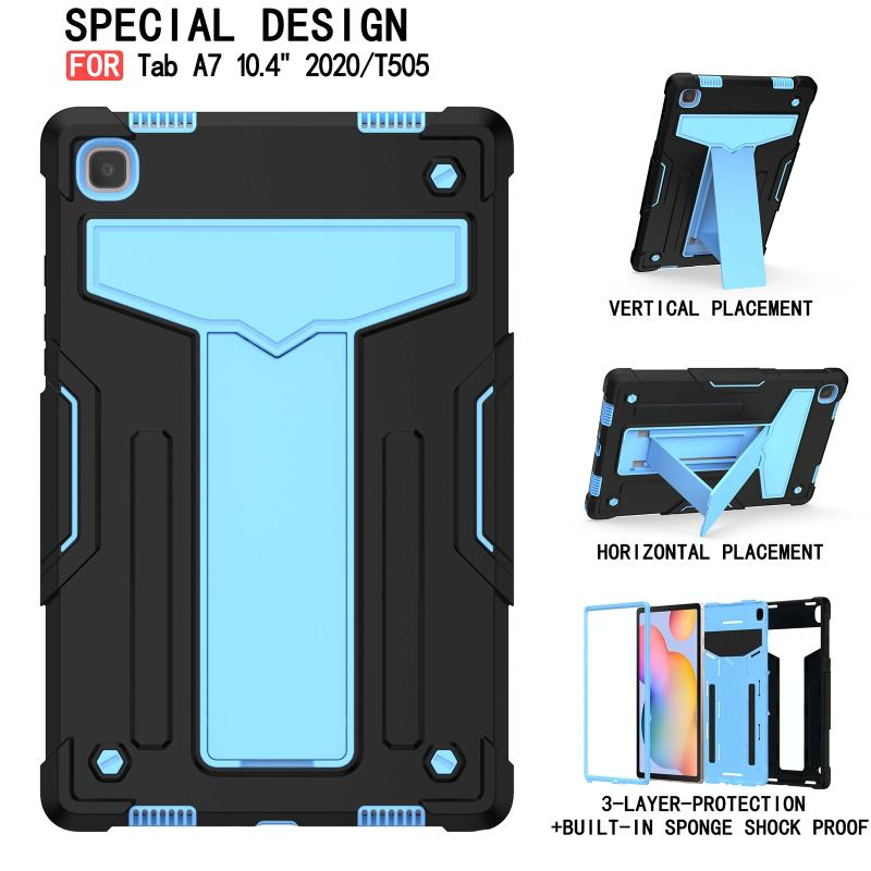 For Samsung Galaxy Tab A7 10.4 (2020) T-shaped Bracket Contrast Color Shockproof PC + Silicone Protective Case(Black+Blue)