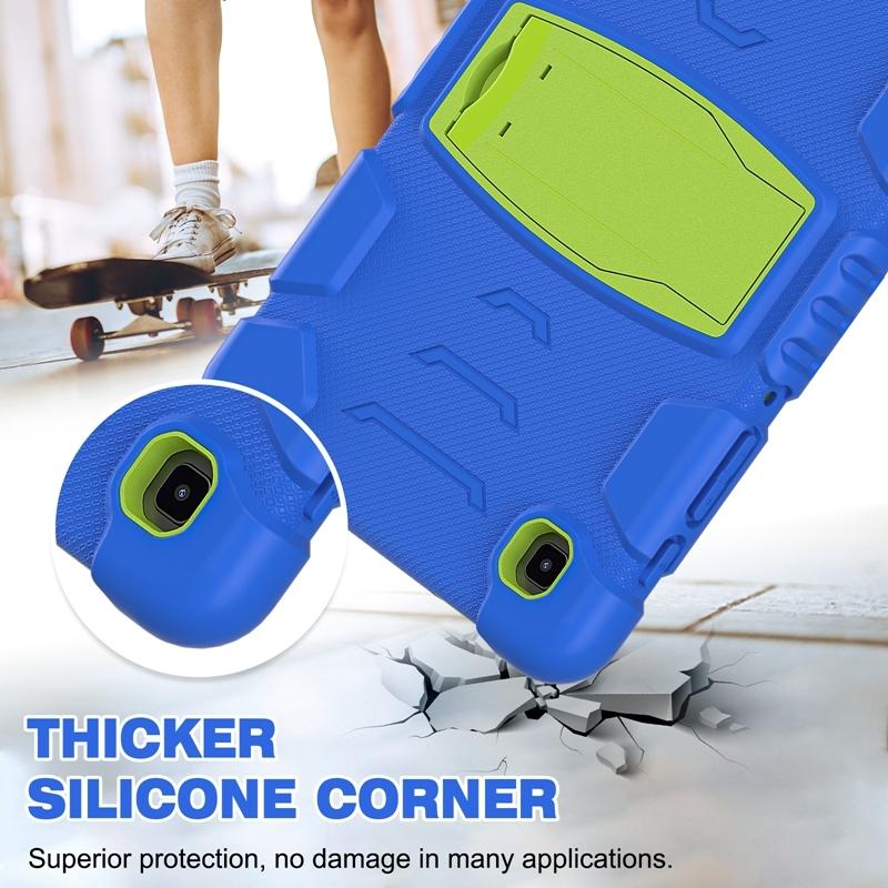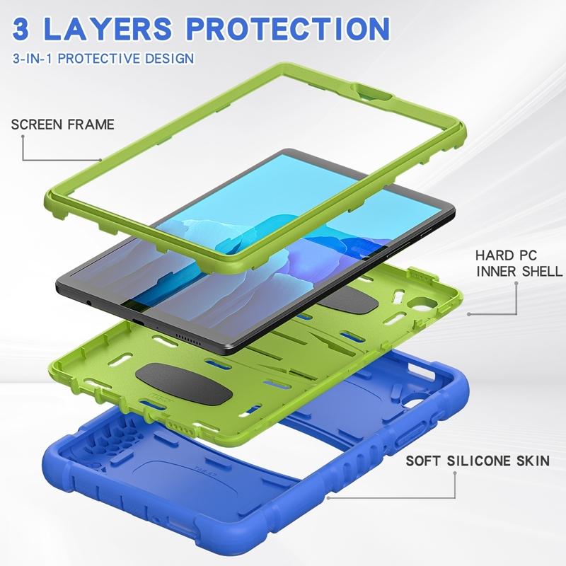For Samsung Galaxy Tab A7 Lite 8.7 inch 2021 3-Layer Protection Screen Frame + PC + Silicone Shockproof Combination Case with Holder(Blue+Lime)