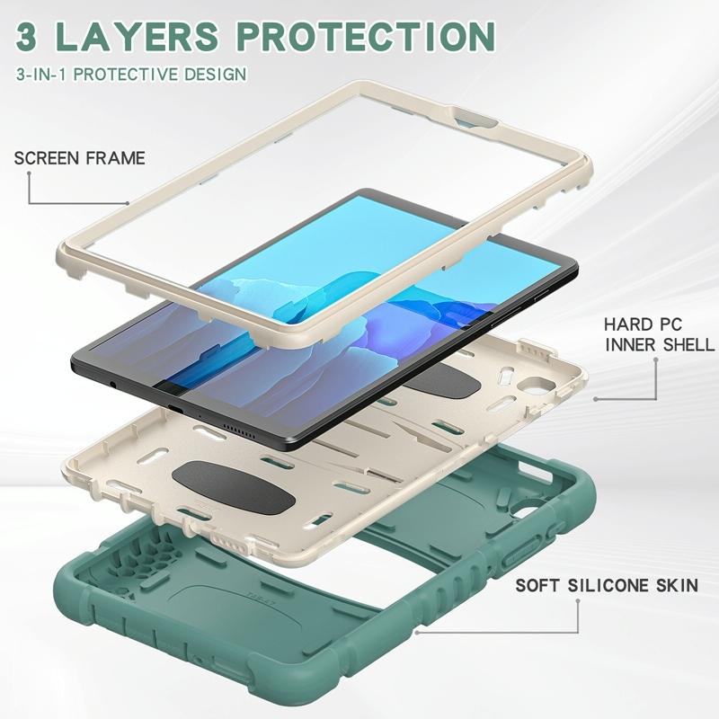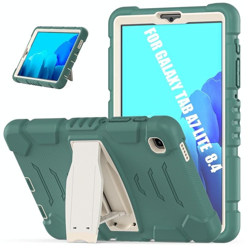 For Samsung Galaxy Tab A7 Lite 8.7 inch 2021 3-Layer Protection Screen Frame + PC + Silicone Shockproof Combination Case with Holder(Emerald Green)