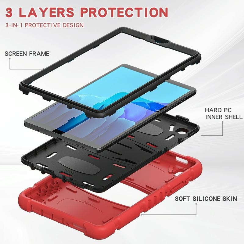 For Samsung Galaxy Tab A7 Lite 8.7 inch 2021 3-Layer Protection Screen Frame + PC + Silicone Shockproof Combination Case with Holder(Red+Black)