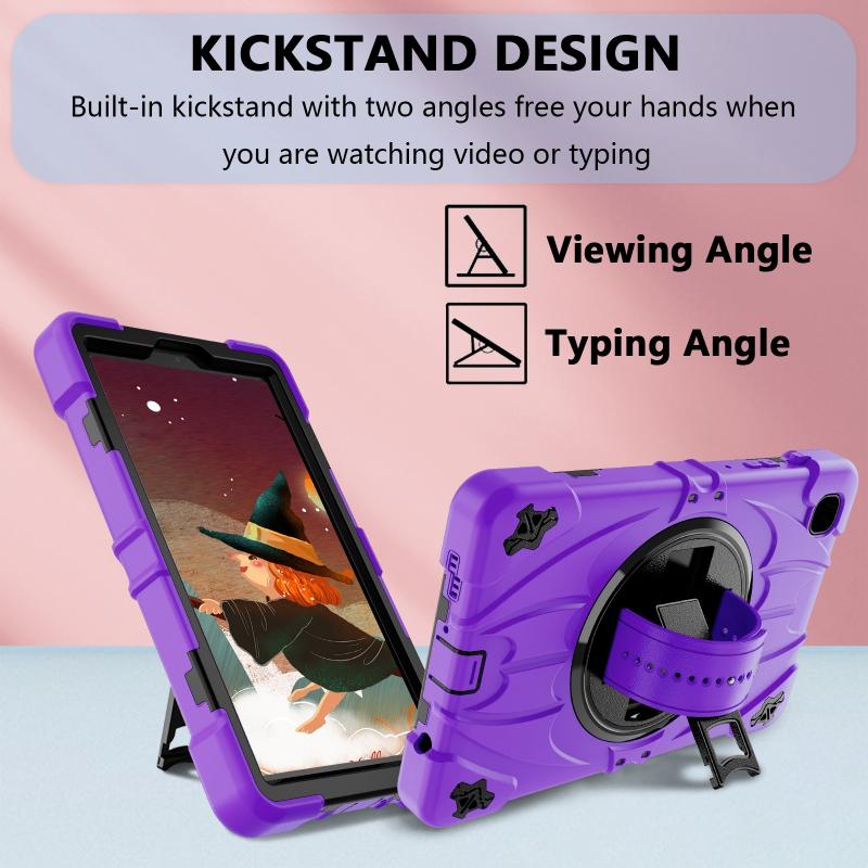 For Samsung Galaxy Tab A7 Lite Bat Hand Grip Turntable Stand Tablet Case(Purple Black)
