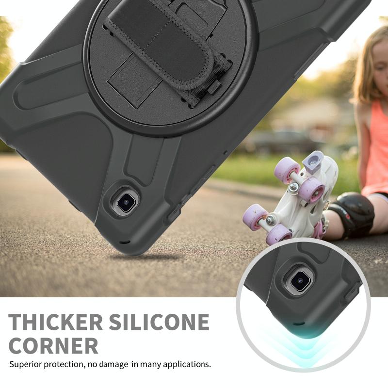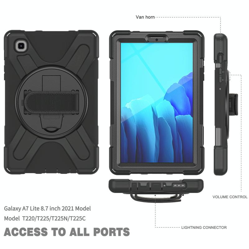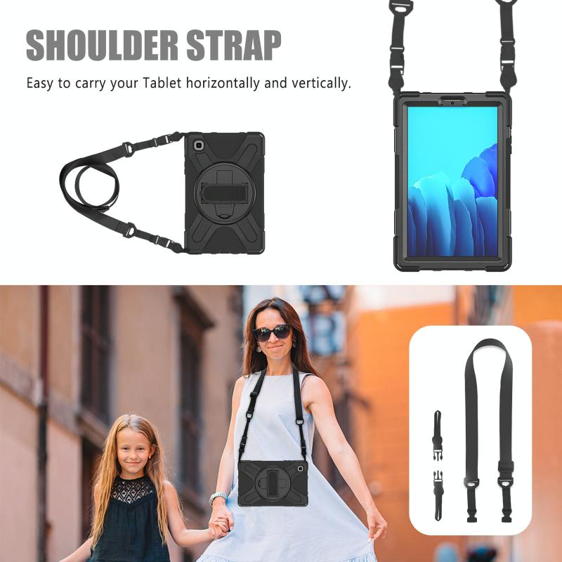 For Samsung Galaxy Tab A7 Lite T220 / T225 Silicone + PC Protective Case with Holder & Shoulder Strap(Black)