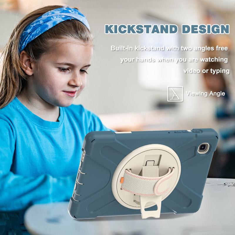 For Samsung Galaxy Tab A7 Lite T220 / T225 Silicone + PC Protective Case with Holder & Shoulder Strap(Cornflower Blue)