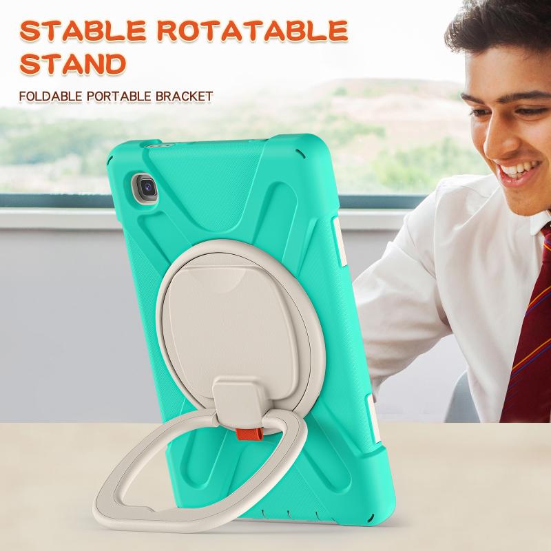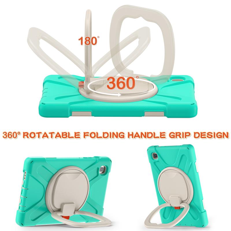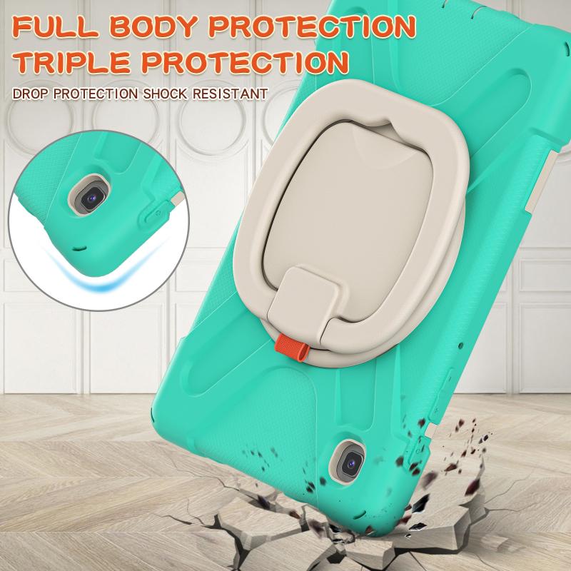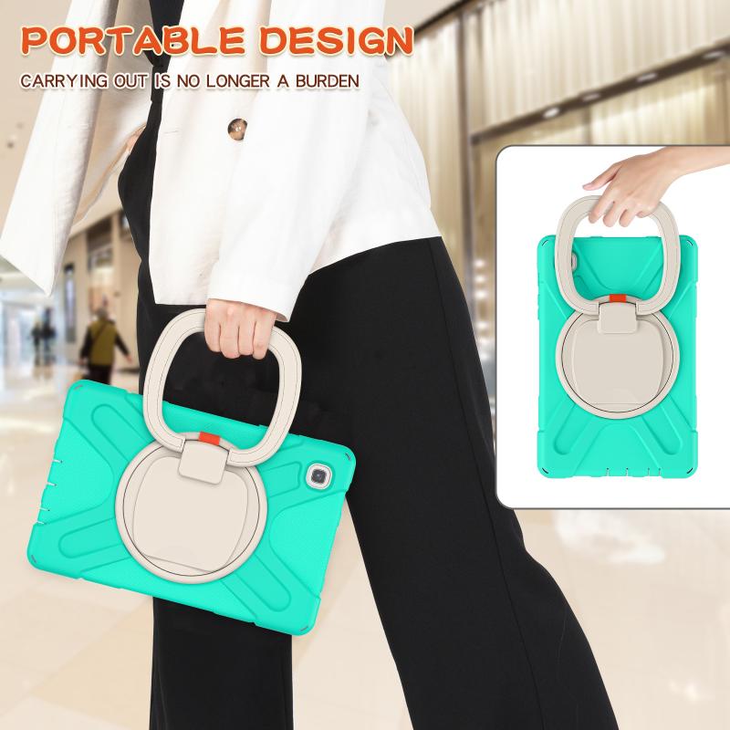 For Samsung Galaxy Tab A7 Lite T220 / T225 Silicone + PC Protective Case with Holder & Shoulder Strap(Mint Green)