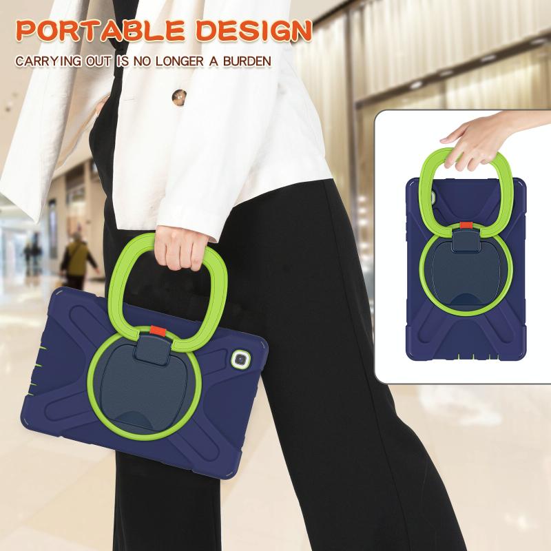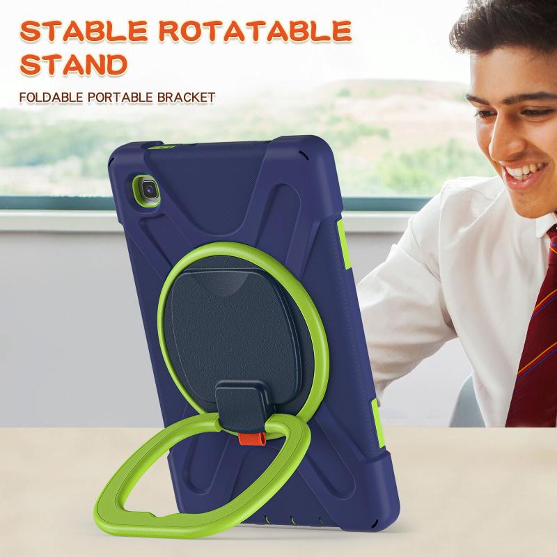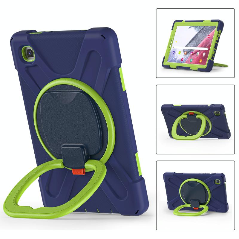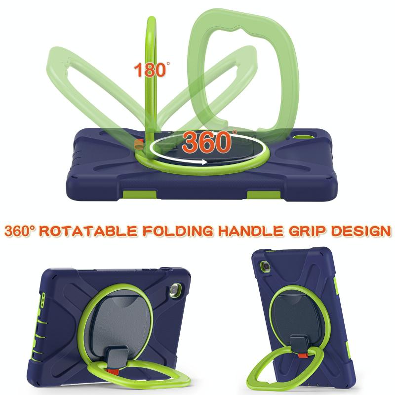 For Samsung Galaxy Tab A7 Lite T220 / T225 Silicone + PC Protective Case with Holder & Shoulder Strap(Navy Blue + Lime)