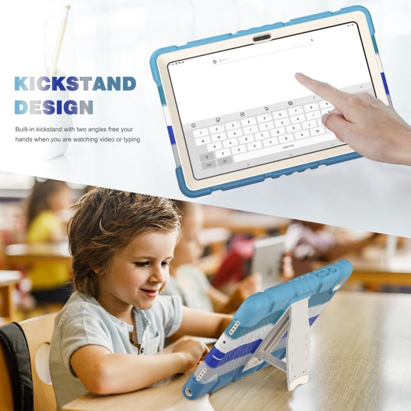For Samsung Galaxy Tab A7 T500 3-Layer Protection Screen Frame + PC + Silicone Shockproof Combination Case with Holder(Colorful Blue)