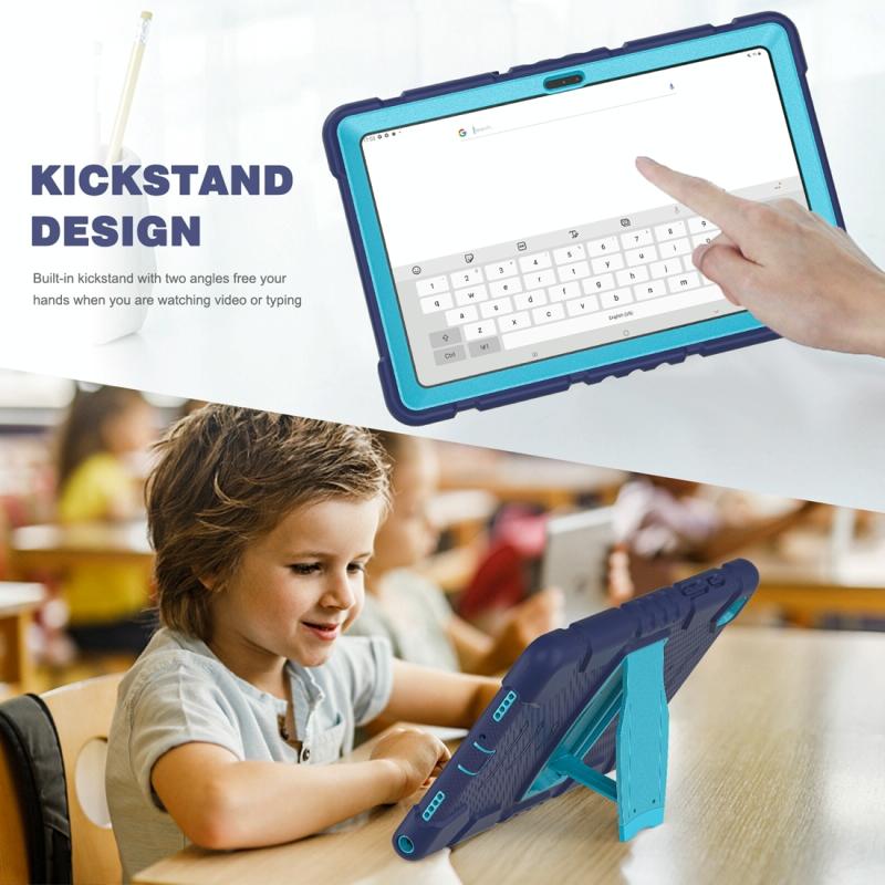 For Samsung Galaxy Tab A7 T500 3-Layer Protection Screen Frame + PC + Silicone Shockproof Combination Case with Holder(NavyBlue+Blue)