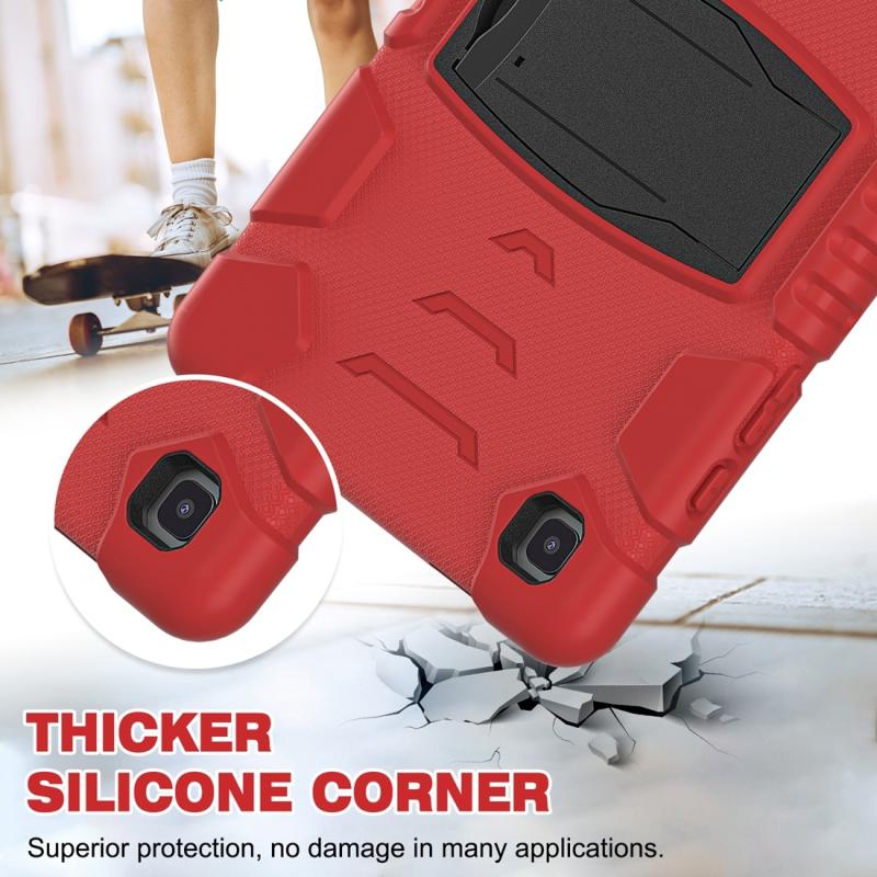For Samsung Galaxy Tab A7 T500 3-Layer Protection Screen Frame + PC + Silicone Shockproof Combination Case with Holder(Red+Black)