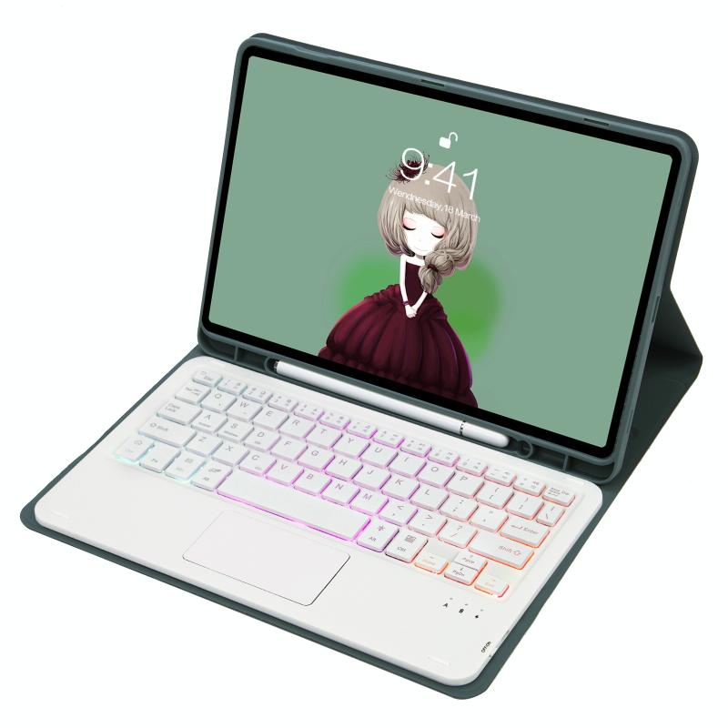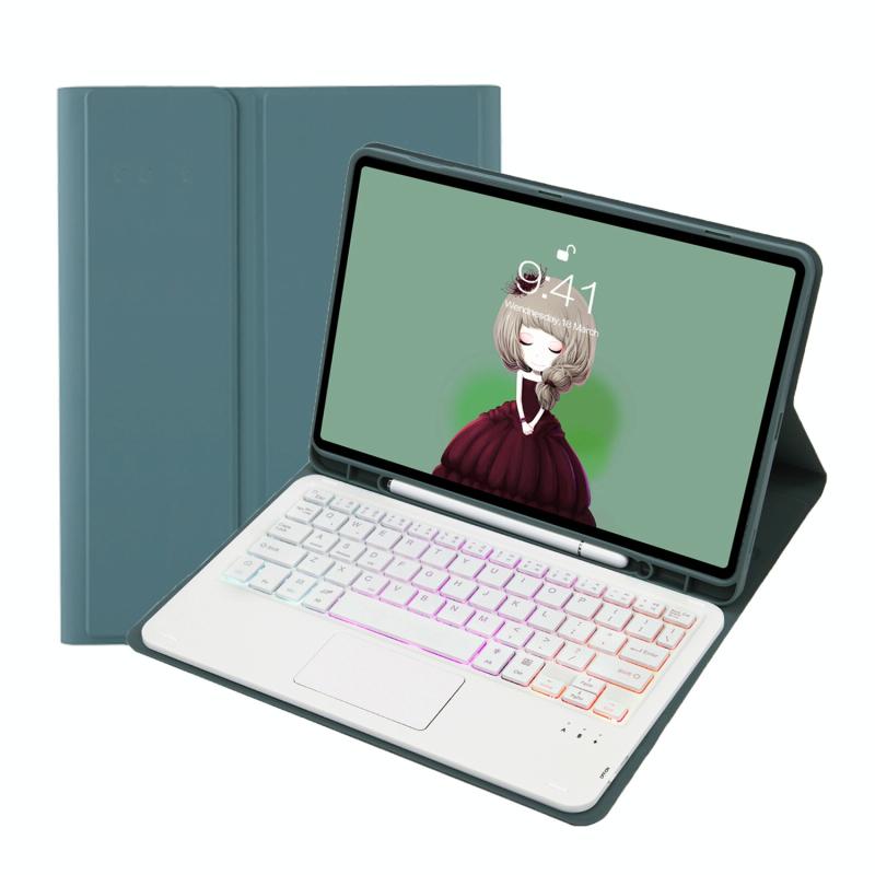 For Samsung Galaxy Tab A8 10.5 (2021) A08B-AS Candy Color Backlight Bluetooth Keyboard Leather Tablet Case(Dark Green)