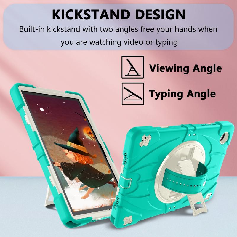 For Samsung Galaxy Tab A8 Bat Hand Grip Turntable Stand Tablet Case(Mint Green White)