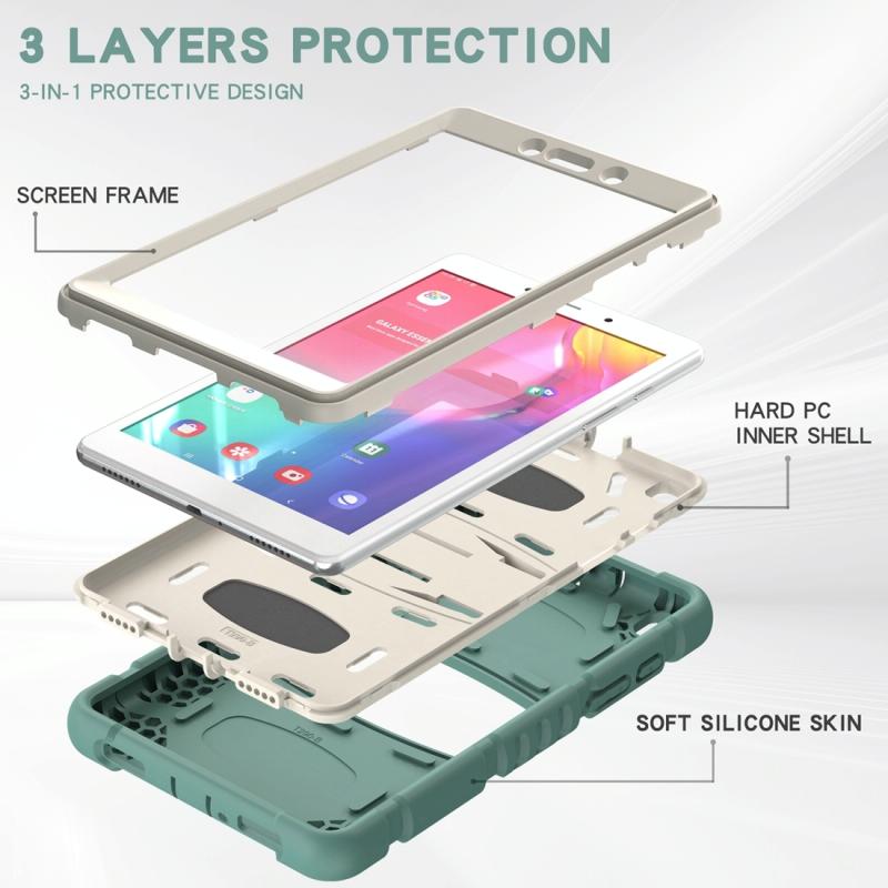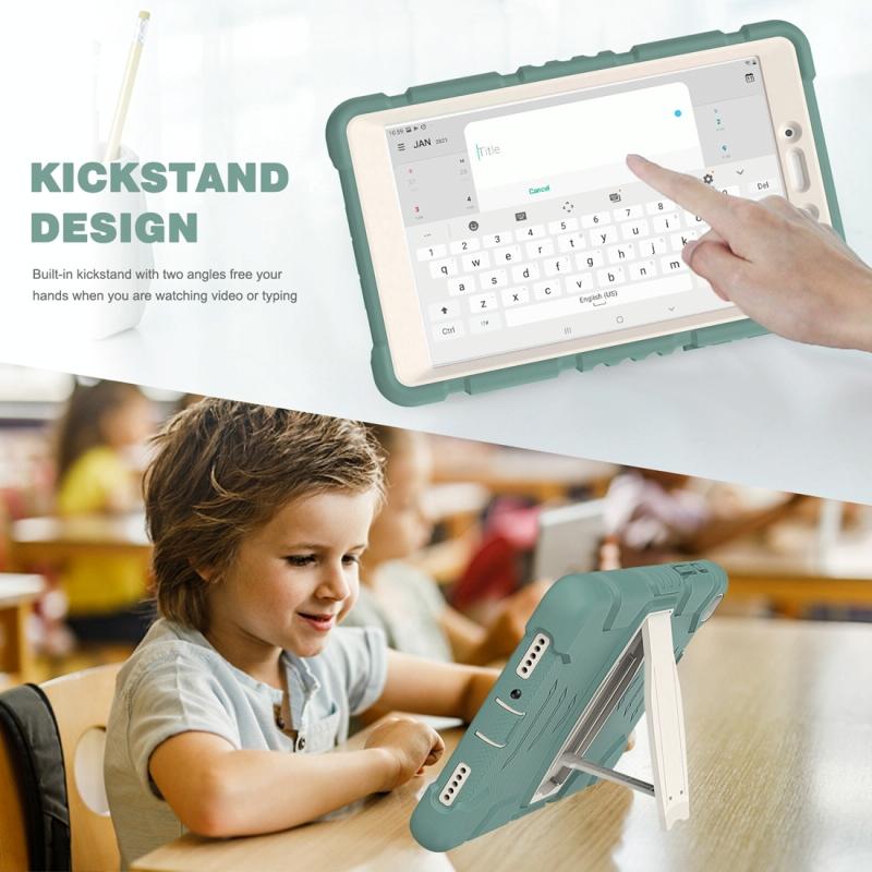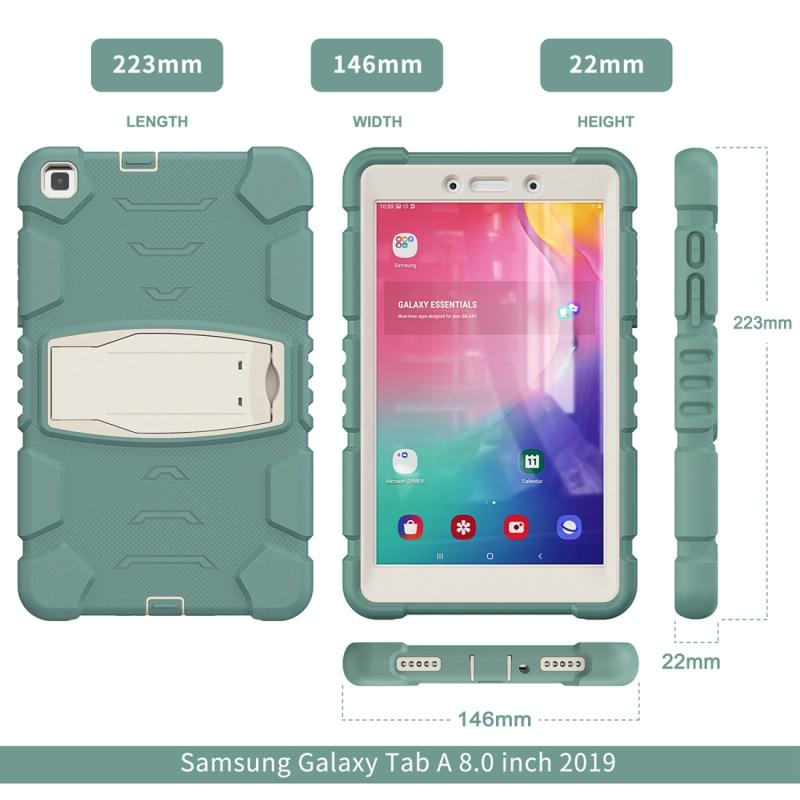 For Samsung Galaxy Tab A8.0 2019 T290 3-Layer Protection Screen Frame + PC + Silicone Shockproof Combination Case with Holder(Emerald Green)