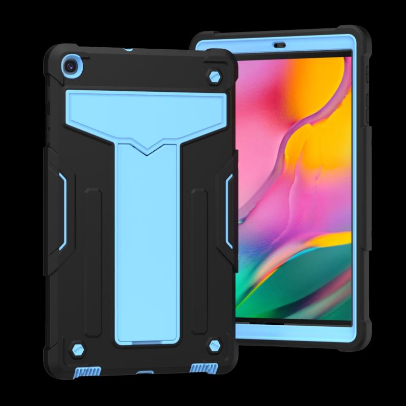 For Samsung Galaxy Tab A8.4 (2020) T307 T-shaped Bracket Contrast Color Shockproof PC + Silicone Flat Protective Case(Black+Blue)