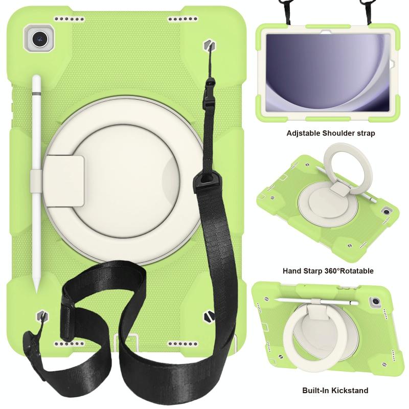 For Samsung Galaxy Tab A9+ 11 2023 Silicone Hybrid PC Tablet Case with Shoulders Strap(Green)