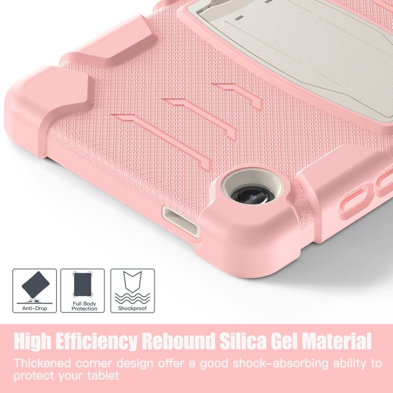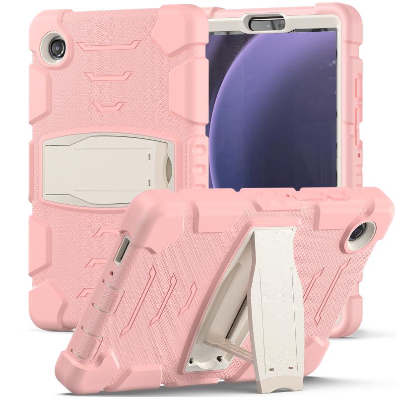 For Samsung Galaxy Tab A9 3-Layer Protection Screen Frame + PC + Silicone Shockproof Combination Tablet Case with Holder(Cherry Blossoms Pink)