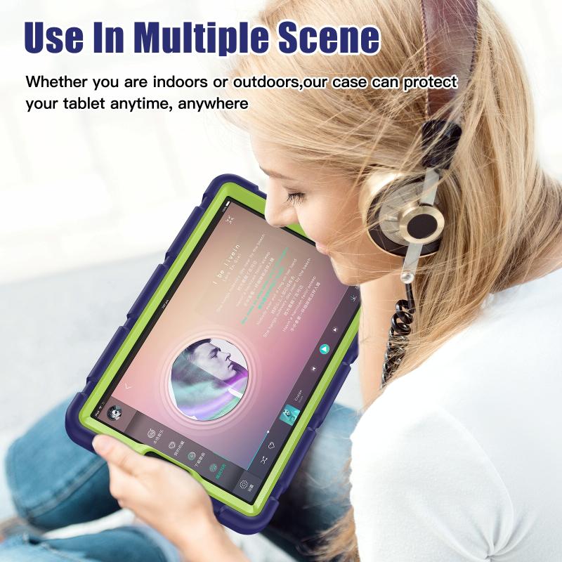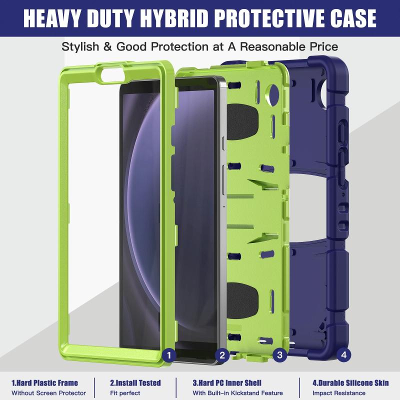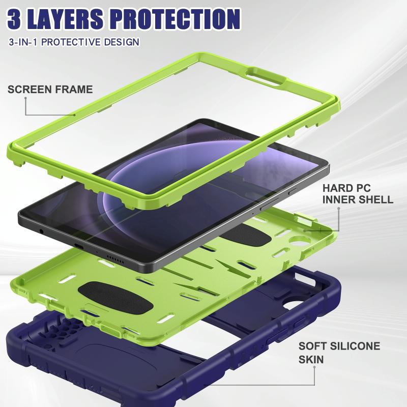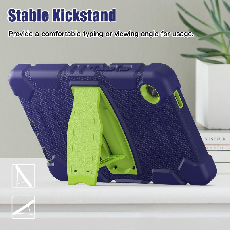 For Samsung Galaxy Tab A9 3-Layer Protection Screen Frame + PC + Silicone Shockproof Combination Tablet Case with Holder(NavyBlue+Lime)