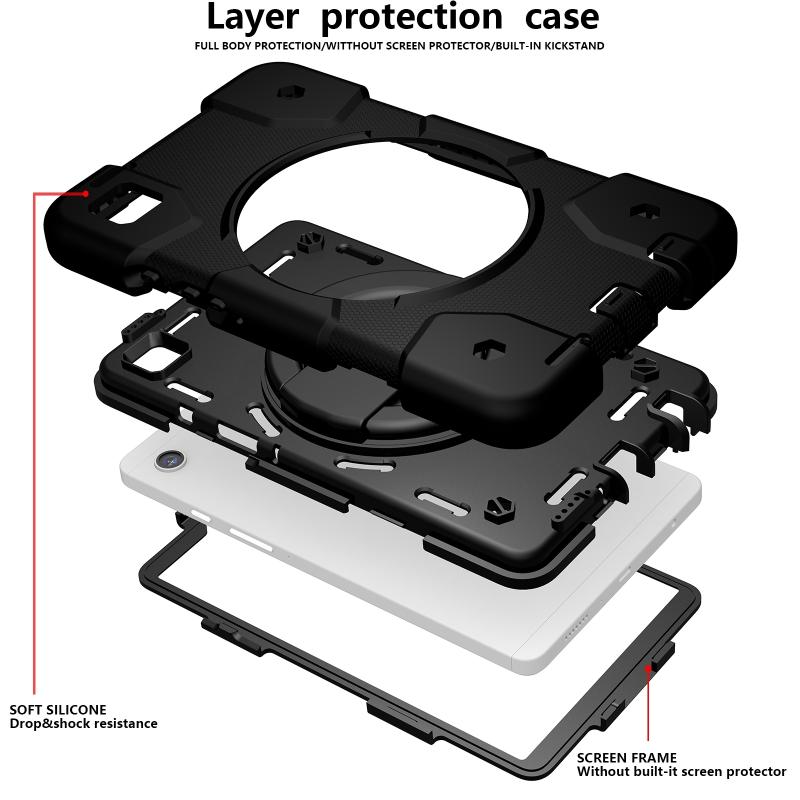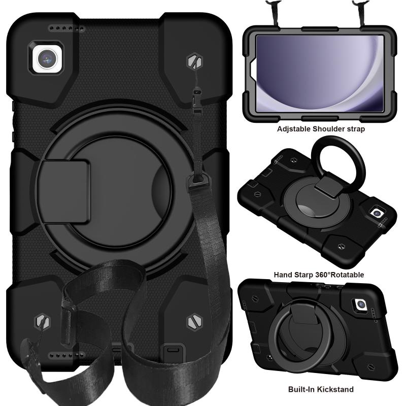 For Samsung Galaxy Tab A9 8.7 2023 Silicone Hybrid PC Tablet Case with Shoulders Strap(Black)