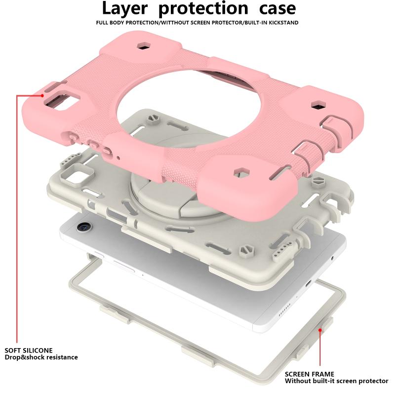 For Samsung Galaxy Tab A9 8.7 2023 Silicone Hybrid PC Tablet Case with Shoulders Strap(Pink)