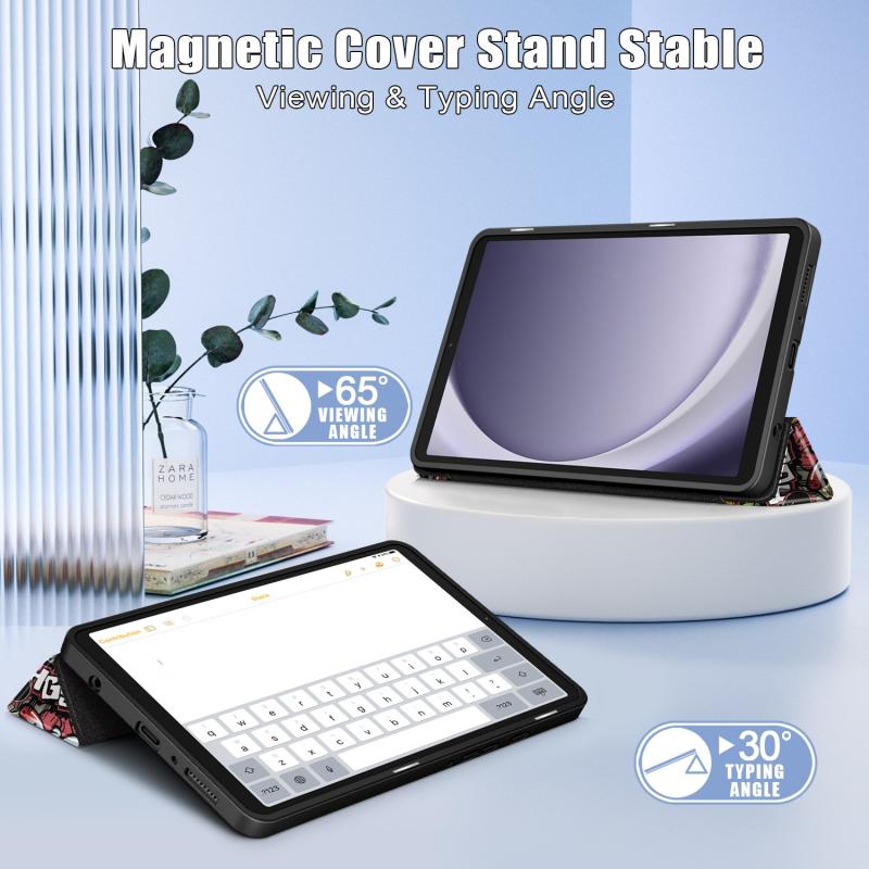 For Samsung Galaxy Tab A9 Acrylic 3-folding Painted Leather Tablet Case(Graffiti)
