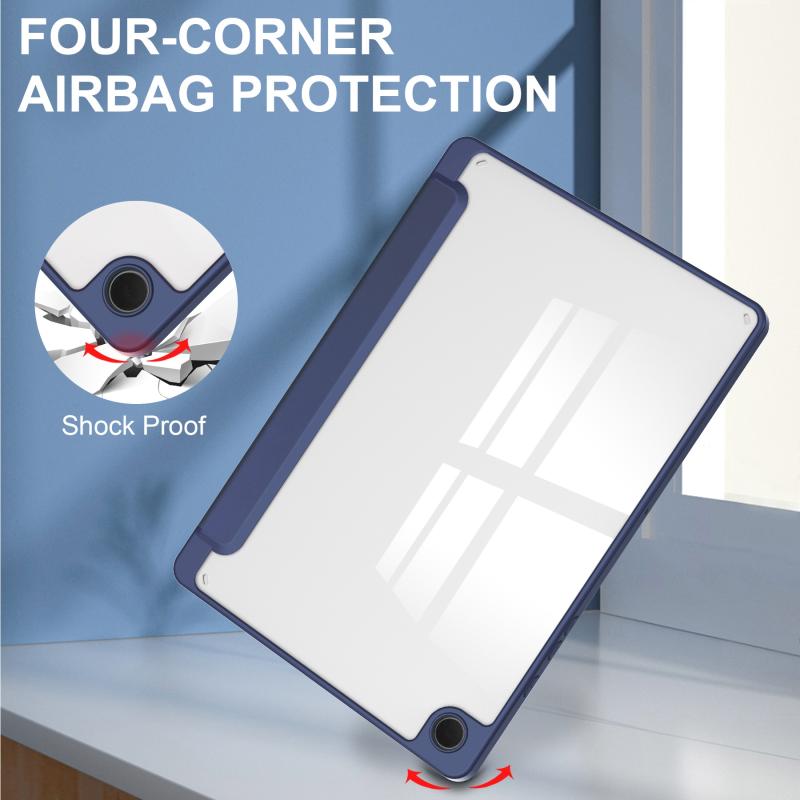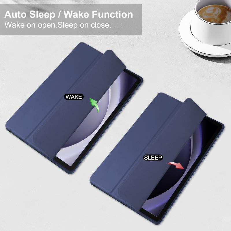 For Samsung Galaxy Tab A9+ Acrylic 3-folding Smart Leather Tablet Case with Pen Slot(Dark Blue)