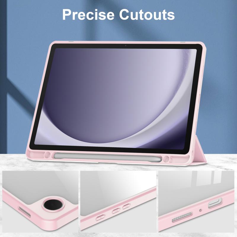 For Samsung Galaxy Tab A9+ Acrylic 3-folding Smart Leather Tablet Case with Pen Slot(Pink)