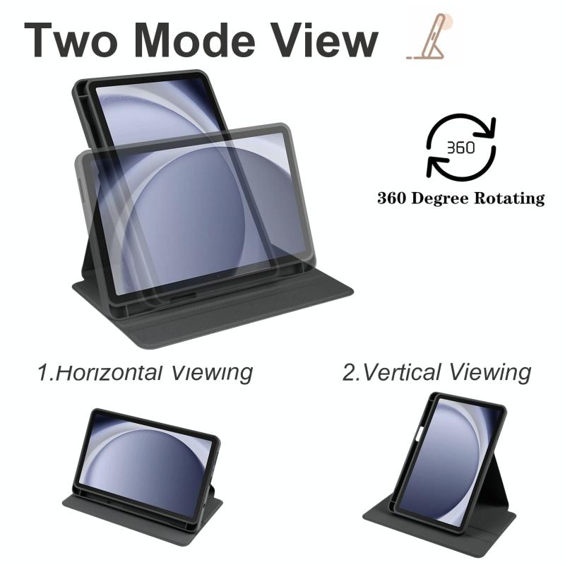For Samsung Galaxy Tab A9 Acrylic 360 Degree Rotation Smart Tablet Leather Case(Black)