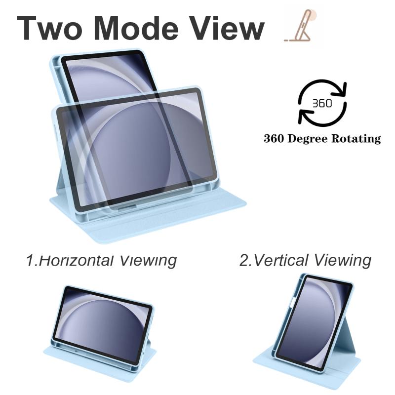 For Samsung Galaxy Tab A9 Acrylic 360 Degree Rotation Smart Tablet Leather Case(Ice Blue)