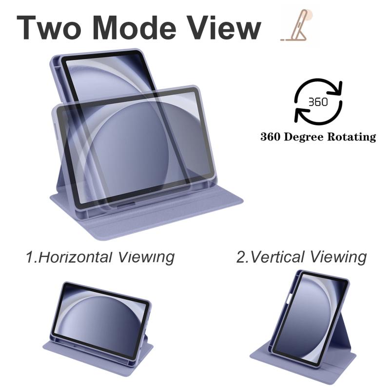 For Samsung Galaxy Tab A9 Acrylic 360 Degree Rotation Smart Tablet Leather Case(Lavender Purple)