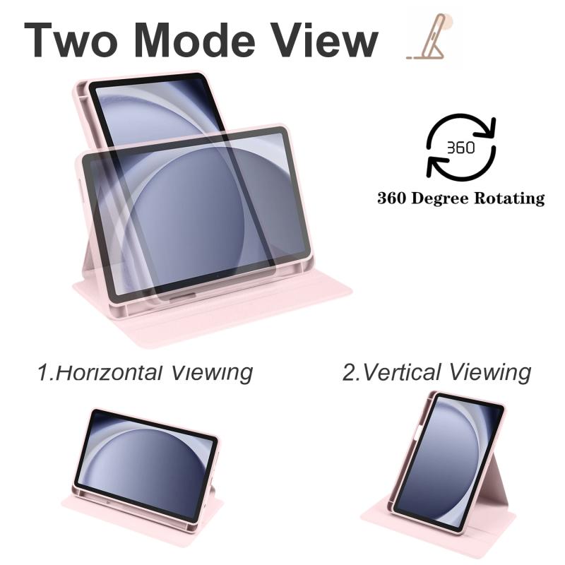 For Samsung Galaxy Tab A9 Acrylic 360 Degree Rotation Smart Tablet Leather Case(Sand Pink)