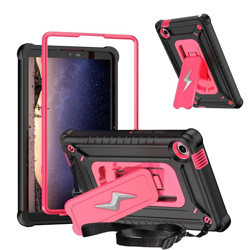 For Samsung Galaxy Tab A9 Armor Bolt Shape Holder Silicone Hybrid PC Tablet Case(Black Rose Red)