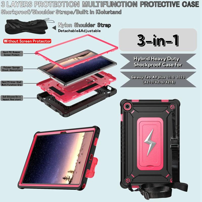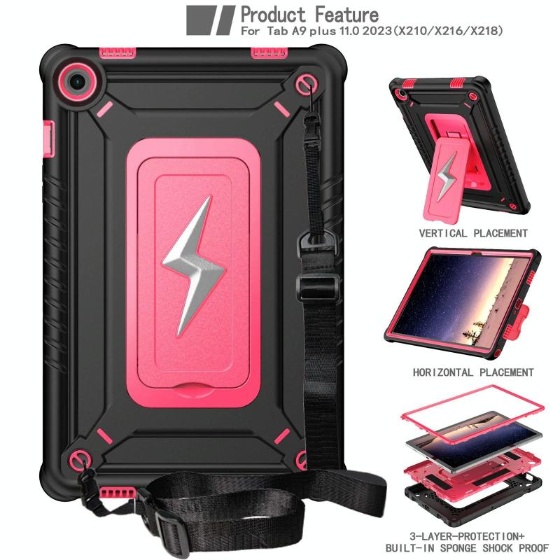 For Samsung Galaxy Tab A9+ Armor Bolt Shape Holder Silicone Hybrid PC Tablet Case(Black Rose Red)