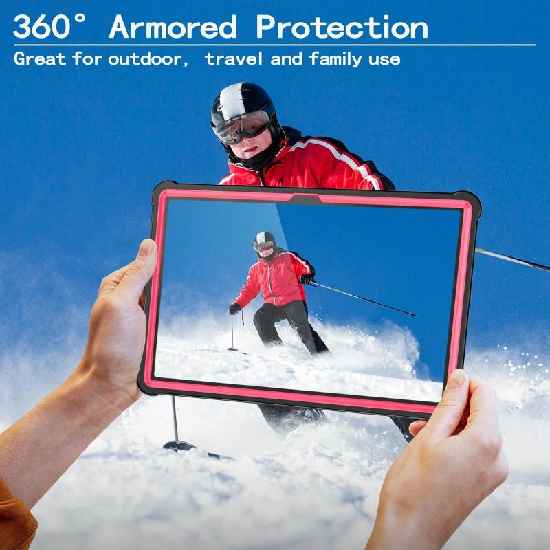 6. Detachable Shoulder Strap: The adjustable hand strap provides easy and comfortable grip, a must-have feature when you are presenting your tablet to others. The detachable and adjustable shoulder strap can help you carry your tablet more safely while hiking, traveling and other outdoor activities. This can also be used to secure your tablet to the car seat.