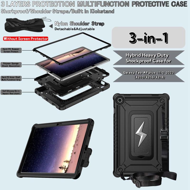 For Samsung Galaxy Tab A9+ Armor Bolt Shape Holder Silicone Hybrid PC Tablet Case(Black)