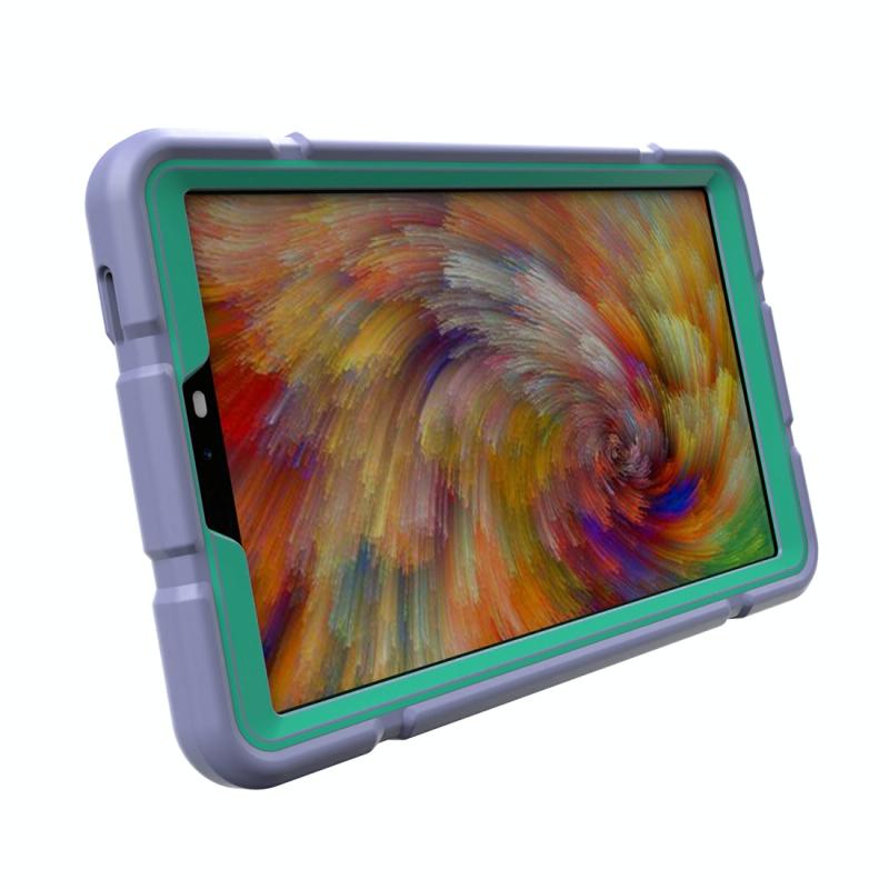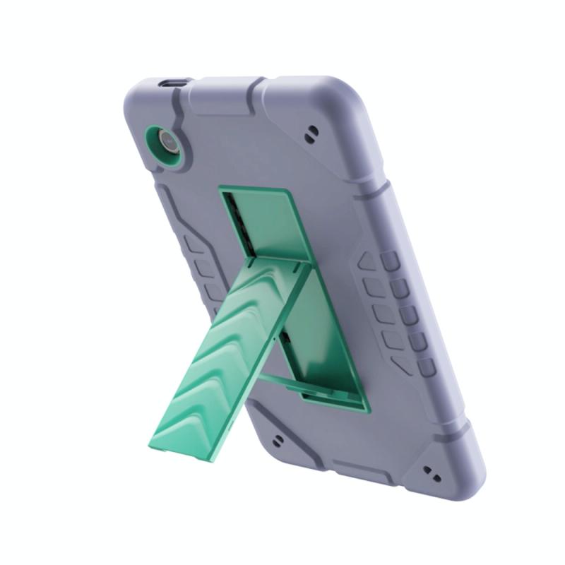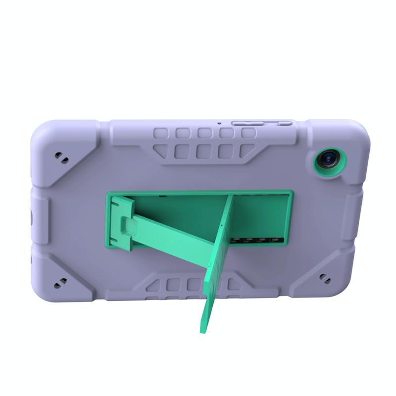 For Samsung Galaxy Tab A9 Armor Holder Silicone Hybrid PC Tablet Case(Purple Mint Green)