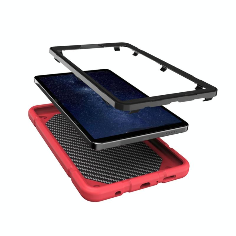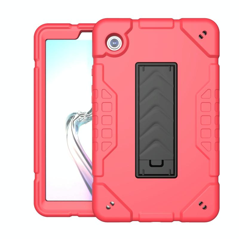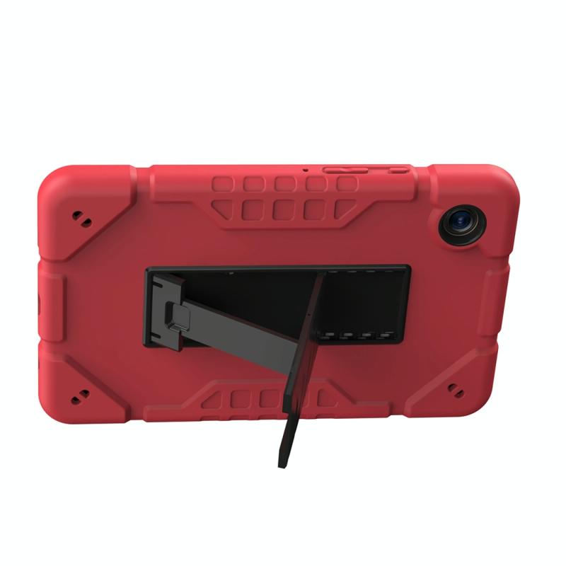 For Samsung Galaxy Tab A9+ Armor Holder Silicone Hybrid PC Tablet Case(Red Black)