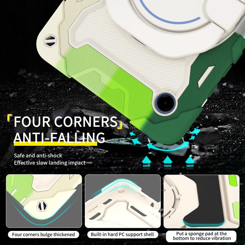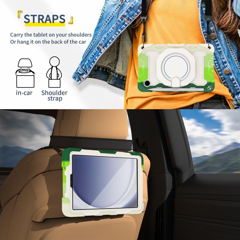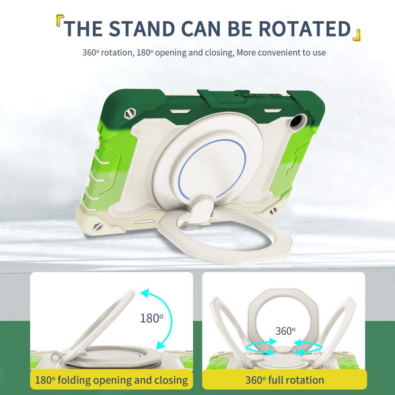 For Samsung Galaxy Tab A9 Armor Portable Rotating Ring Holder Silicone Tablet Case(Colorful Green)