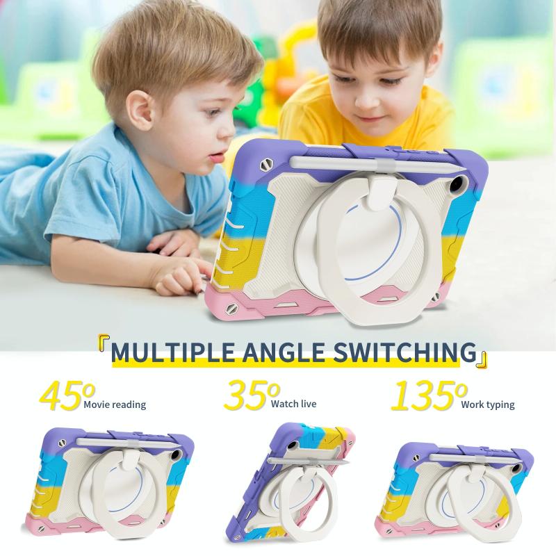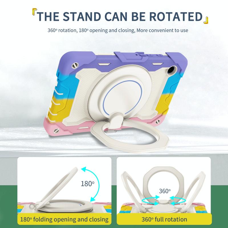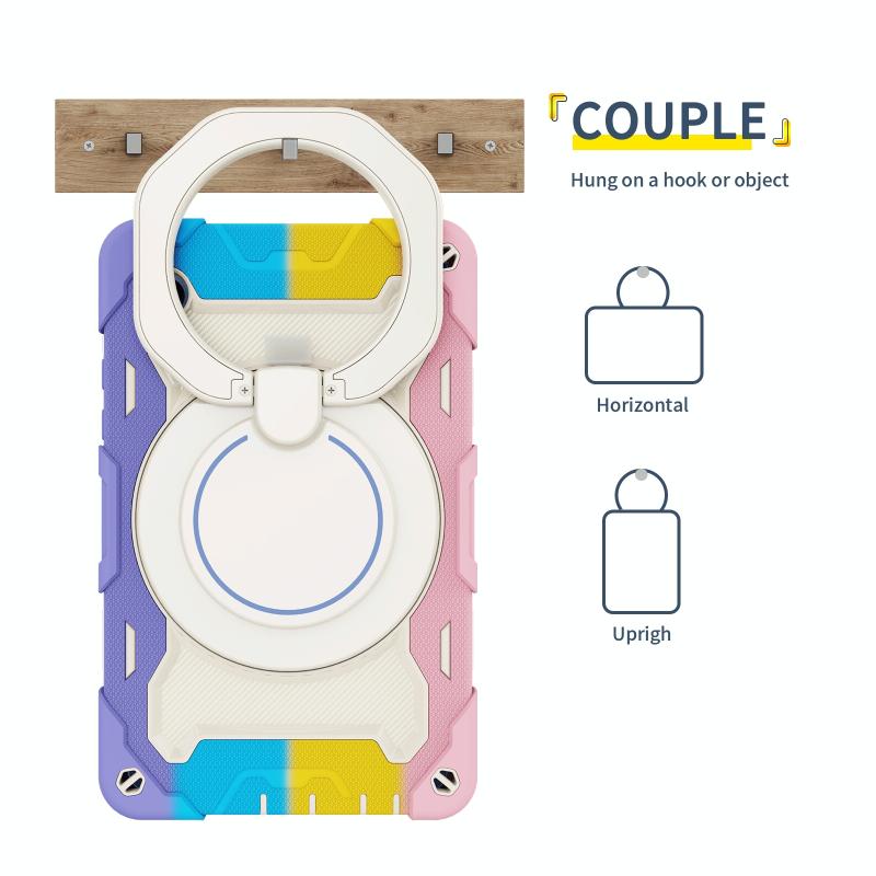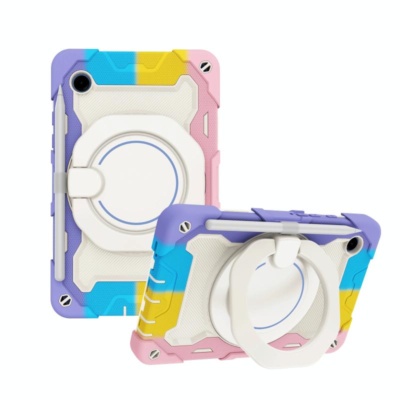 For Samsung Galaxy Tab A9 Armor Portable Rotating Ring Holder Silicone Tablet Case(Colorful Pink)