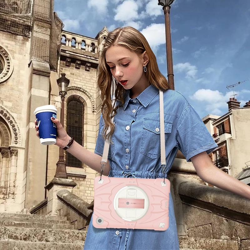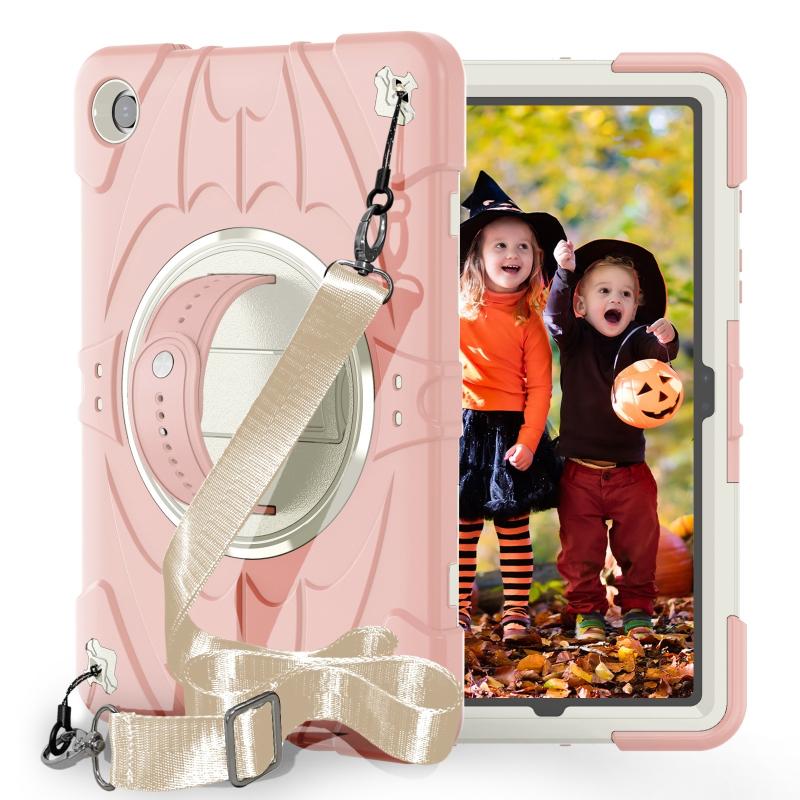 For Samsung Galaxy Tab A9+ Bat Hand Grip Turntable Stand Tablet Case(Pink White)