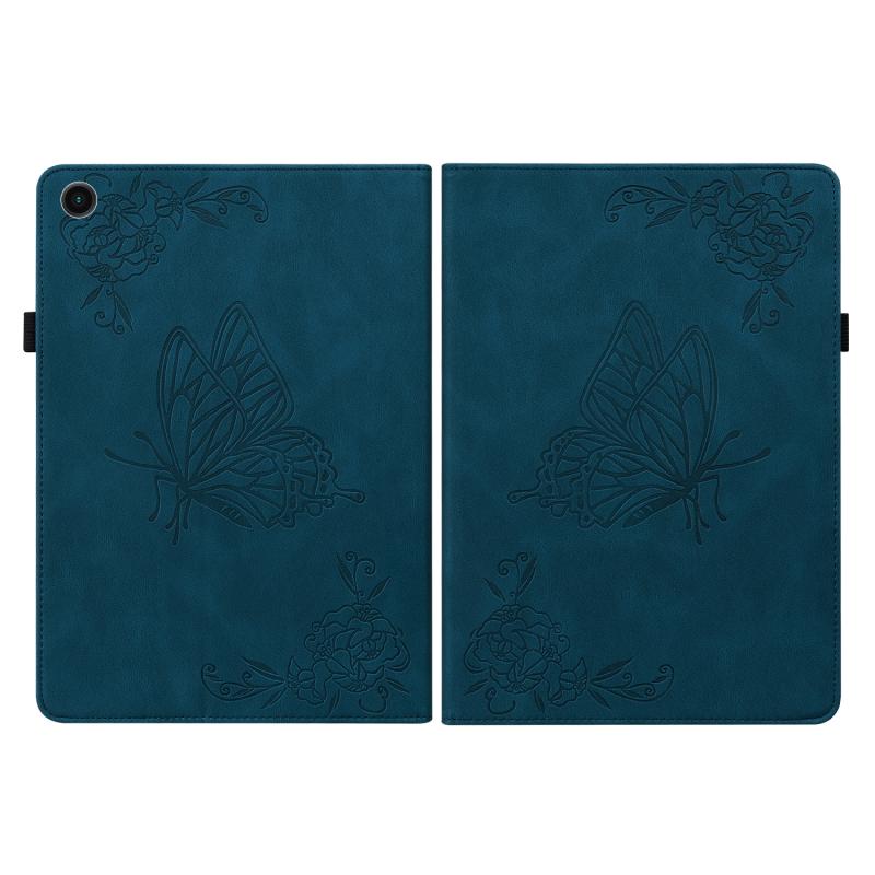 For Samsung Galaxy Tab А9 Butterfly Flower Embossed Leather Tablet Case(Blue)