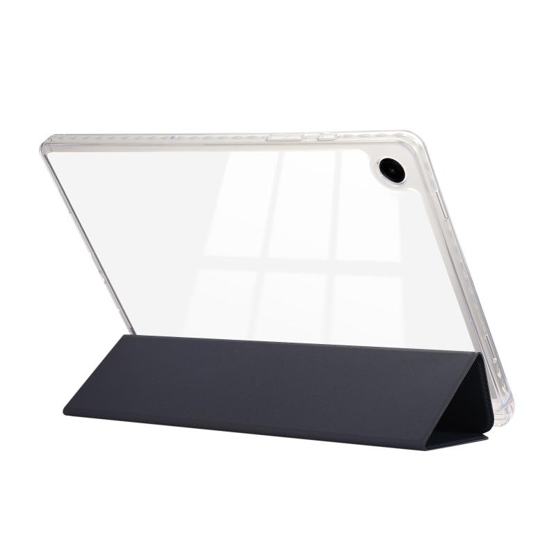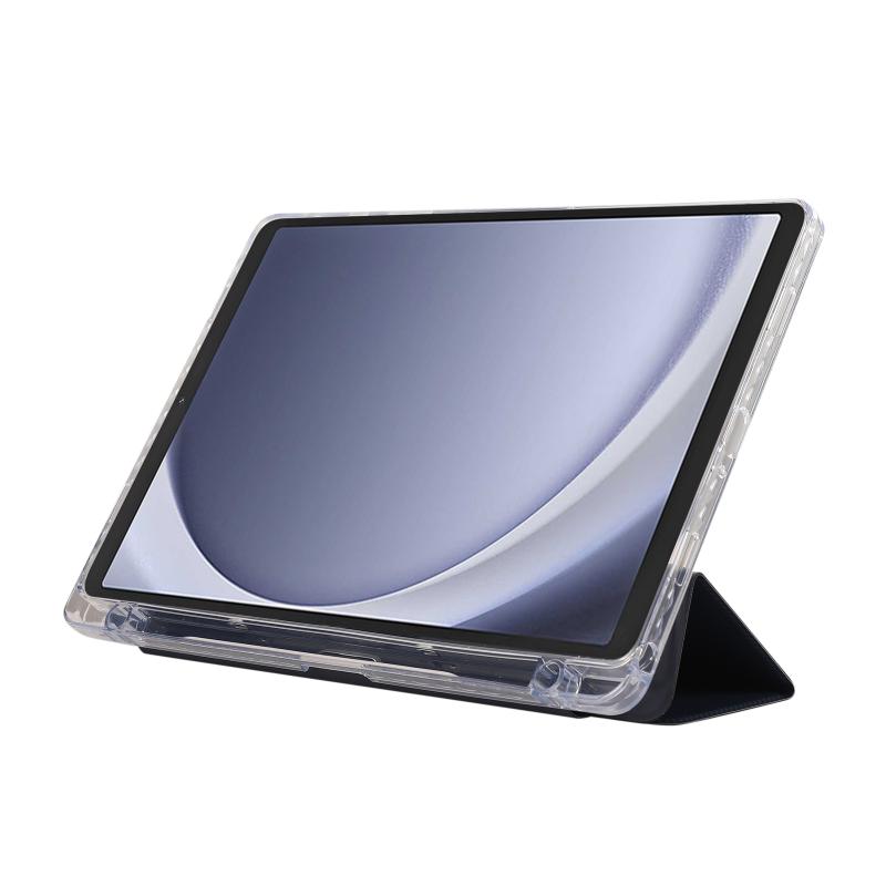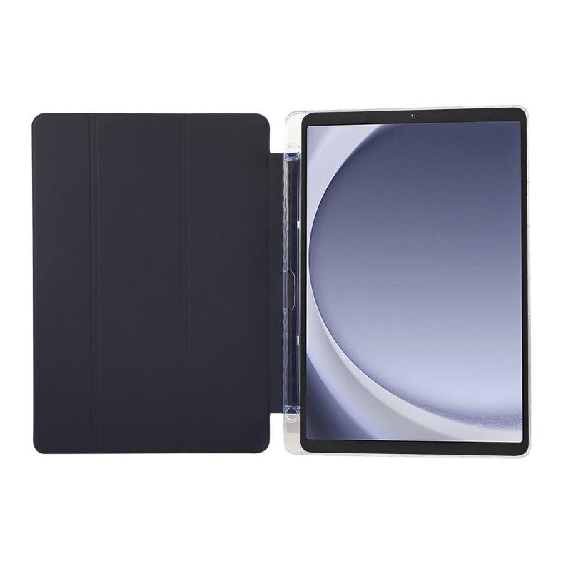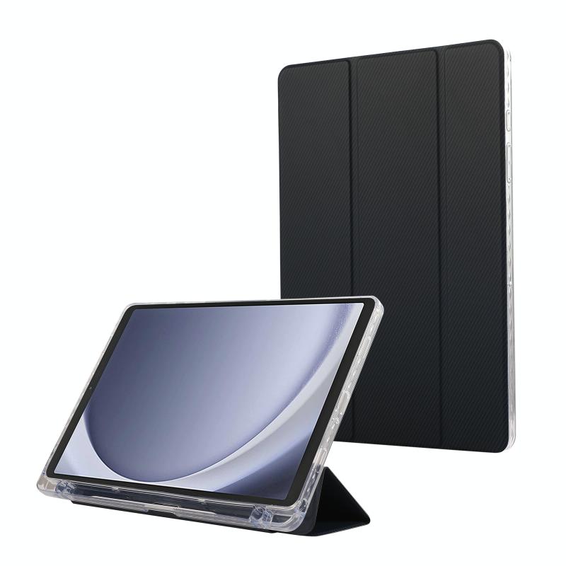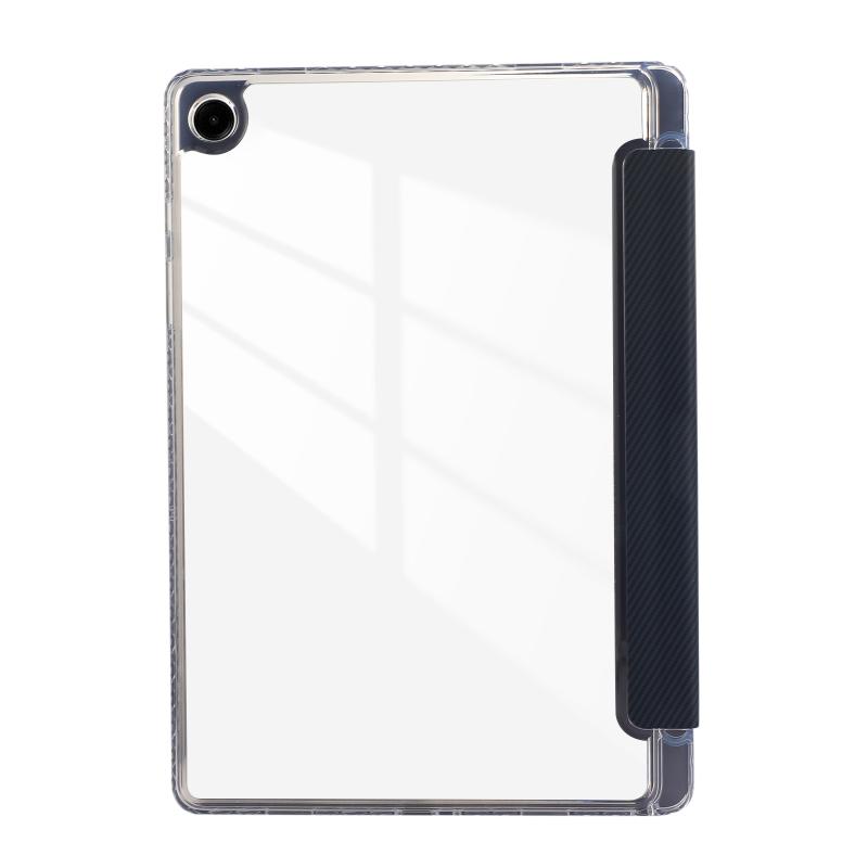 For Samsung Galaxy Tab A9+ Carbon Fiber Clear Acrylic 3-Fold Leather Tablet Case(Dark Blue)